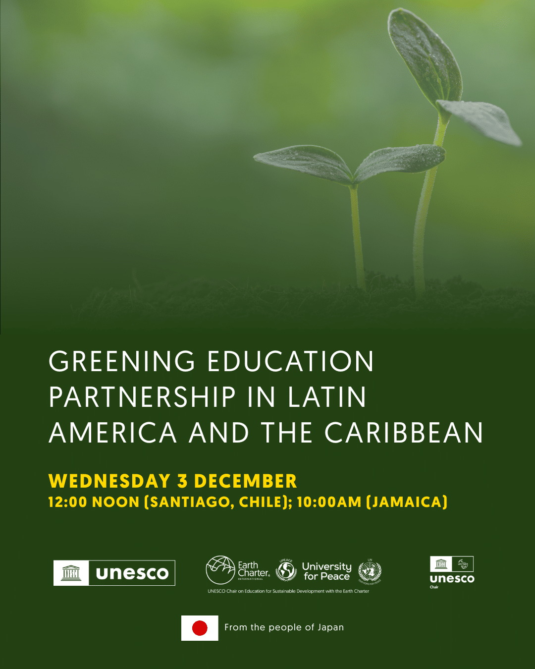The UNESCO Office in Santiago, in its capacity as regional secretariat of ESDNet2030, will organize the official launch of the … Launch Event: Greening Education Partnership in Latin America and the Caribbean