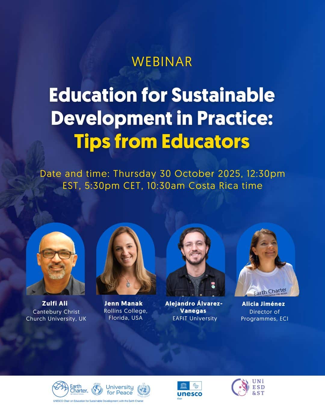 This webinar is organized as part of our UNESCO Chair on Education for Sustainable Development with the Earth Charter, which develops education programmes and research in the field of education, sustainability, as well as values and ethics.