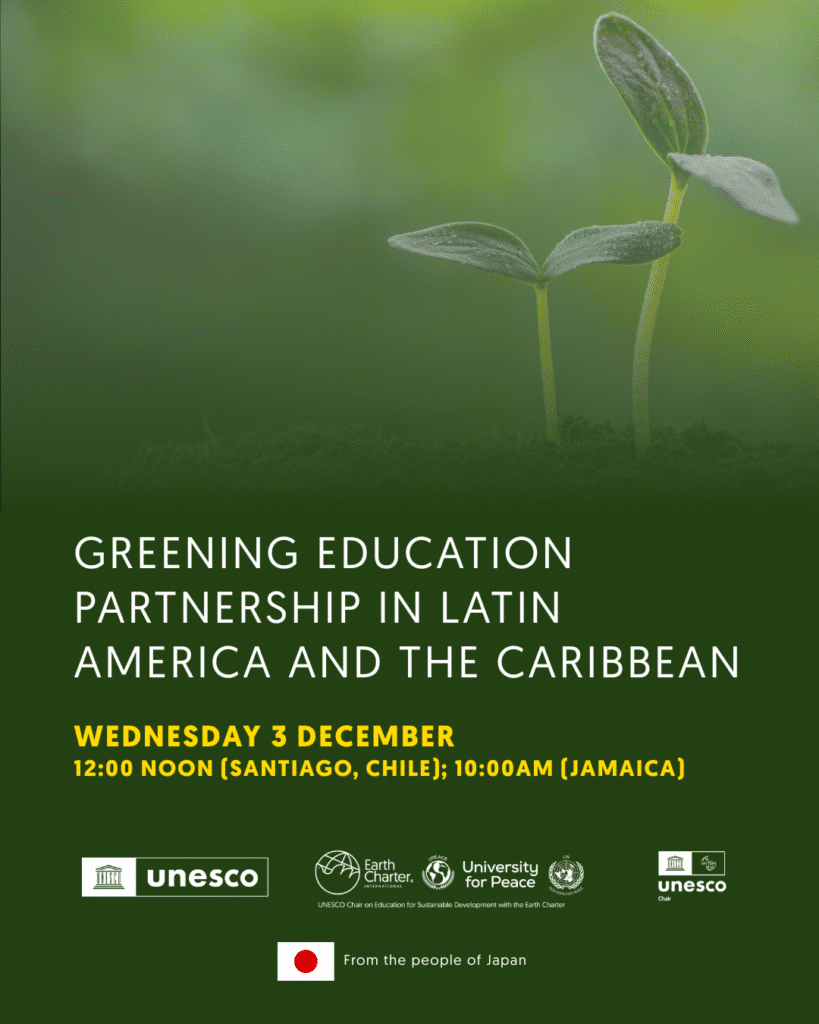 The UNESCO Office in Santiago, in its capacity as regional secretariat of ESDNet2030, will organize the official launch of the Greening Education Partnership (GEP) materials for dissemination in Latin America and the Caribbean.