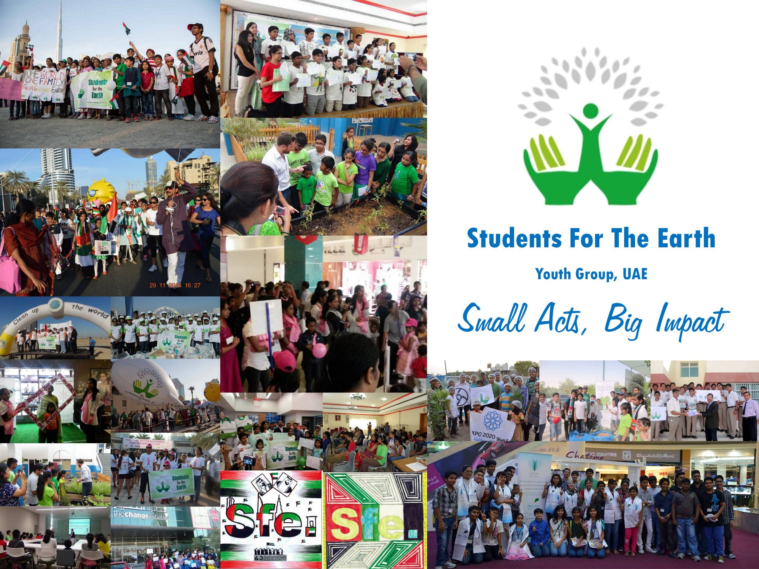Students for the Earth, is a youth group based in the United Arab Emirates that engages in a variety of activities including environmental, humanitarian, and cultural activities, and was founded in 2013. The group has organized workshops, visits, volunteering activities, and charity collections. It organizes campaigns and competitions on social media to spread awareness. Students for the Earth was selected as the October 2013 youth group the month. They recently participated in a Clean Up Drive to clean up the city of Sharjah, and also organized an all UAE online quiz and art competition to celebrate the country’s national day in December.